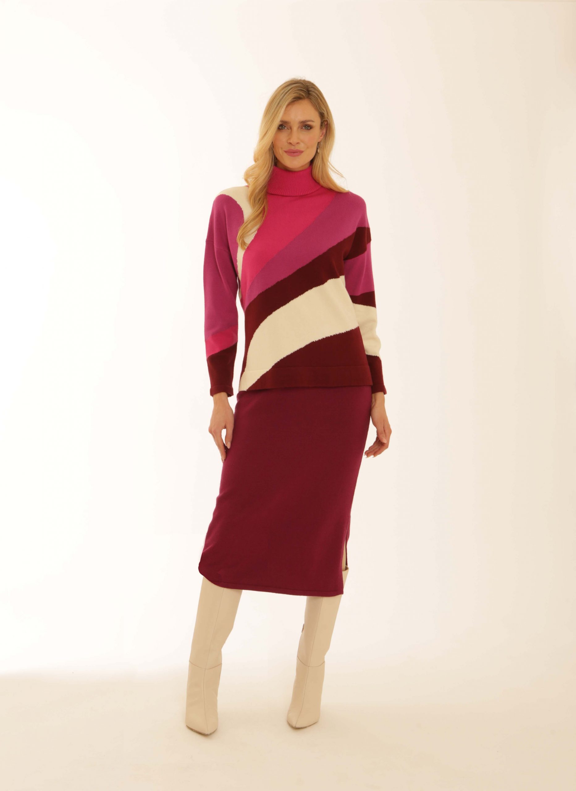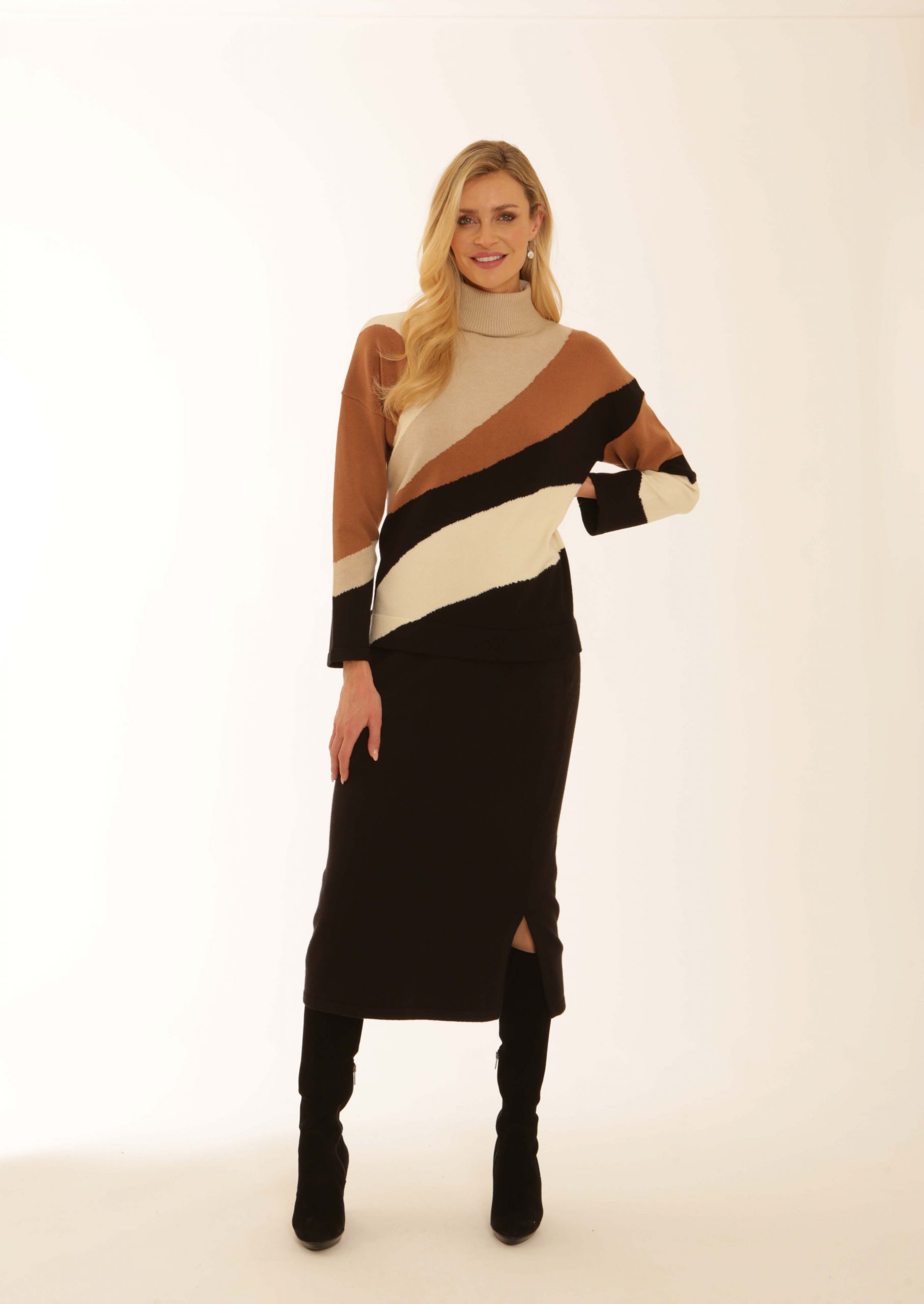 Renowned for producing beautifully co-ordinated collections, Pomodoro mixes key knitwear and jersey pieces in statement colours with striking prints and strong tailoring to create a truly contemporary and versatile look.